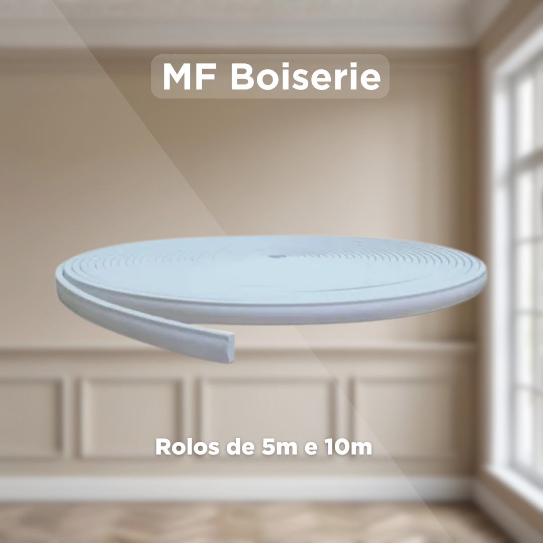 INFORMAÇÕES TÉCNICAS: Produto flexível, vai em rolos, substitui as molduras feitas de madeira, gesso, isopor e plástico rígido, é de fácil instalação, não precisa furar parede, não precisa buchas e parafusos, paredes curvas não são mais problemas, este material acompanha as irregularidades das superfícies, fácil de limpar, resistente e evita problemas com cupins, umidades e mofo.